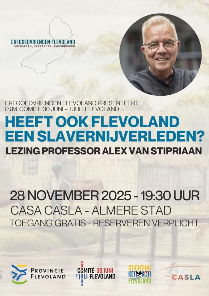 Weer een mooi voorbeeld weer van onderzoek naar het eigen slavernijverleden. De bijeenkomst op 28 november is georganiseerd door Erfgoedvrienden Flevoland in samenwerking met Comité 30 juni – 1 juli Flevoland. Er is o.a. een lezing over dit onderwerp door prof. Alex van Stipriaan.
